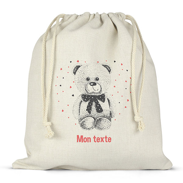 A lovely cotton bag with a bear and hearts design to carry lunch boxes/bento boxes.